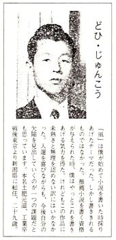 私が喜茂別から出ている「人間像」の同人になったのは、最初の渡道より十三年も前の昭和二十九年、三十歳のときであった。私の文学への旅立ちは人より遅く、二十五歳になってからだが、文学上の友人が皆無だから、「文章倶楽部」と「文芸首都」に交互に小説や詩を発表するしか道がなかった。やがて投稿家仲間で倶知安生れの朽木寒三同人が、「人間像」入りをすすめてくれたのだ。そのころの私は、東京・横浜のいくつかの同人雑誌から勧誘されたり、「文芸首都」同人になる寸前だったが全部中止して、えりにえって遠い北国から出ている無名の同人誌に参加したことになる。朽木が大そうすぐれた作品を発表し続けていたので、彼が所属している雑誌なら考える必要もないと思ったのだ。