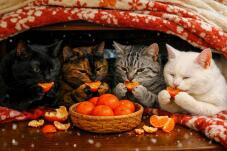 AIに炬燵でみかんを食べている猫さん描いてもらいました