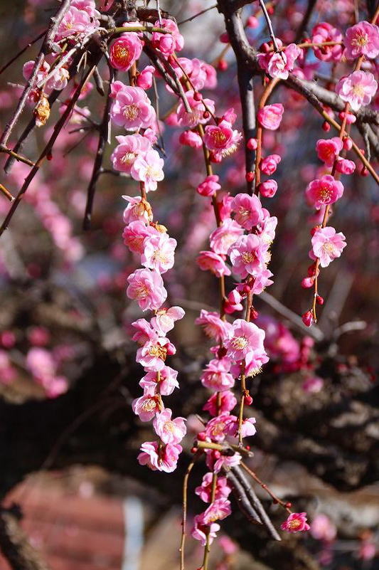 先日耕心館へ行った後薬用植物園に行ってしだれ梅を写してきました。