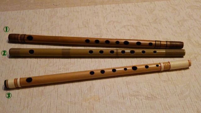最近、プロ仕様の憧れの蘭情さんの篠笛を買いました。@蘭情(唄七)、Aプラ管(唄七)、B東雲@大塚(唄八)です。プラ管は量産品ですが、その他は手作り品であり、笛師の拘りの品です。笛自体の大きさ、孔の大きさ、指孔の幅など・・いろいろですよ。深い世界ですわぁ。(^−^)