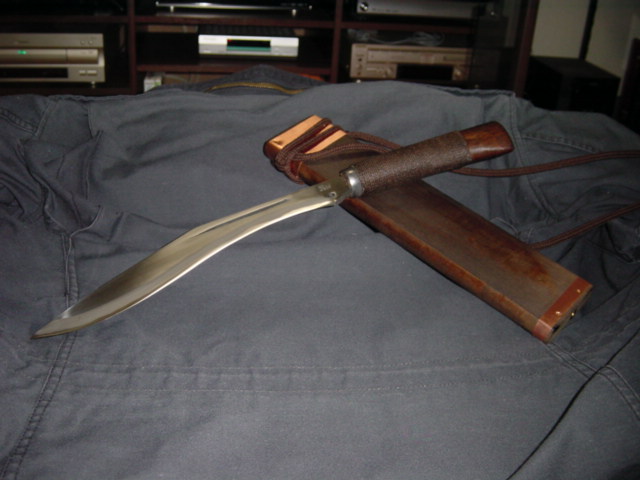 更に追伸:先日話した《和装ククリ》の画像を貼り付けます。 写真ではハッキリ判らないかもしれませんが刃渡り九寸五分のかなり凶悪なシロモノですよ。