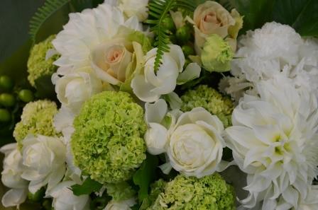 故人を弔う為のお花の役割と、残されたご家族への癒しとしての役割のお花、今回はどちらも担うお花なのだと思いながら制作させていただきました。