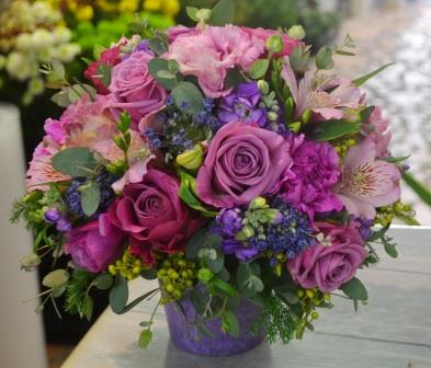 紫系の少し大人カラーのアレンジ、今年も喜んでいただけたかな…