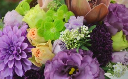 古希の御祝でのパープル系のアレンジメント、秋も深まり発色の良くなった花々をアレンジしました。この季節にピッタリな色合いですよね☆彡