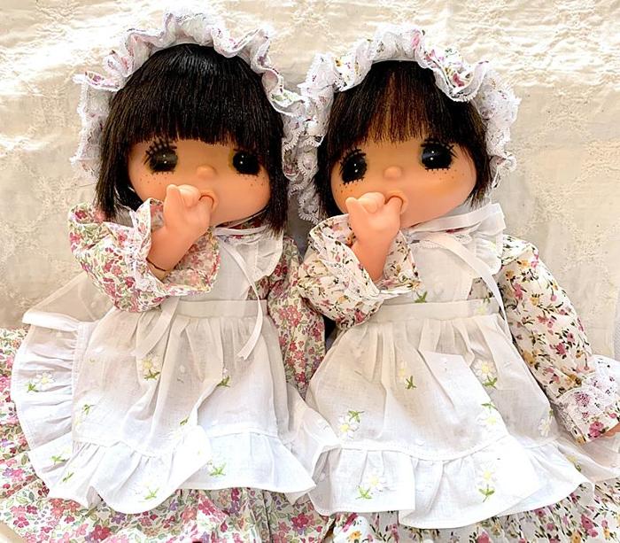 いつも厚手のワンピースをお買い上げ頂いた際に、お伝えしている注意書きを貼り付けるのを忘れていました。 「コール天や別珍は布の性質により、縫い代のピンキング鋏で切った端からぼそぼそと織糸が抜けますが、初めだけで、パンパンと手で払う等して、抜ける分が落ちてしまうと後はもう大丈夫で、ほつれてもきません。」 お人形の服の場合、できるだけ縫い代のかさを少なくする為にわざとピンキングだけで処理しています。 よろしくお願いします。